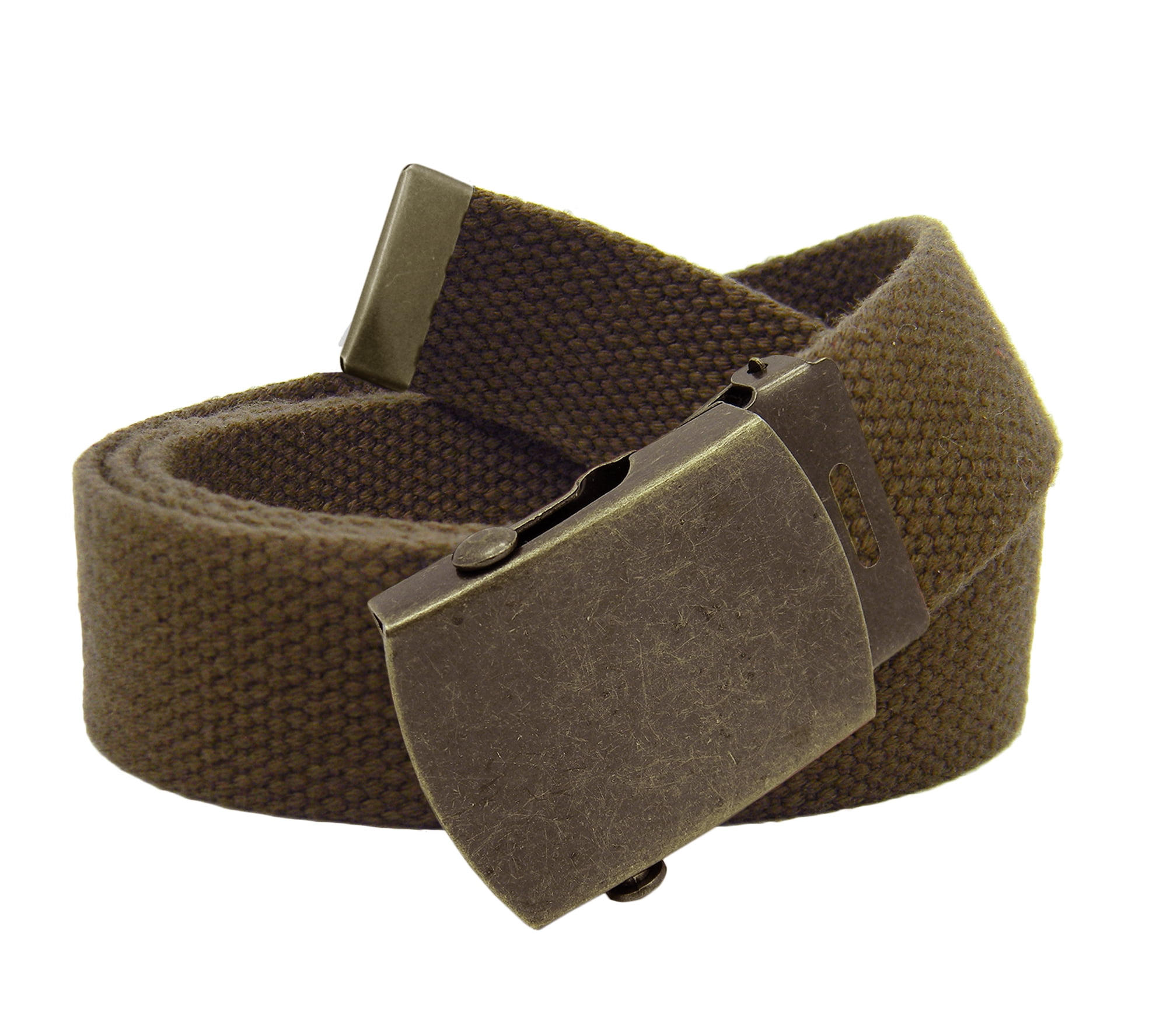 Men S Classic Antique Gold Military Slider Belt Buckle With Canvas Web Belt Medium Brown Walmart Com